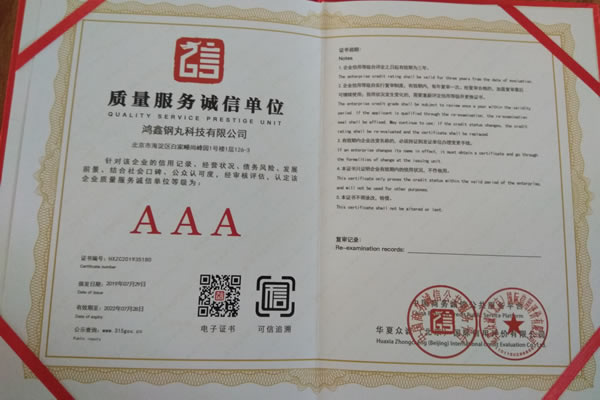公司所有產(chǎn)品均通過ISO9001 **質量認證,2014年更獲得了第三屆中國金屬磨料行業(yè)具有影響力品牌-華尊獎